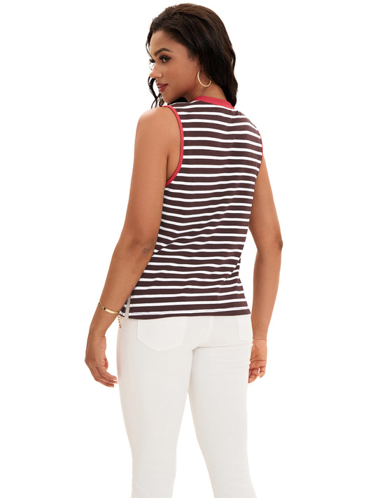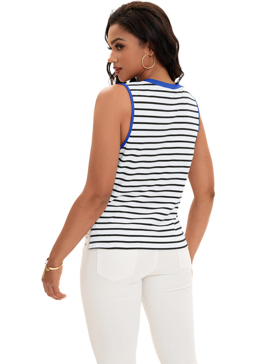 Women Summer Color Block Striped Crewneck Camisole Top Sleeveless Flowy Side Slit Tank Top