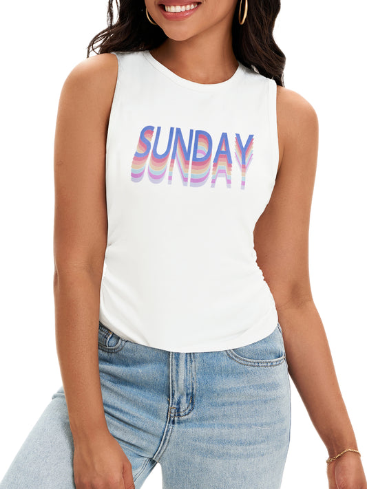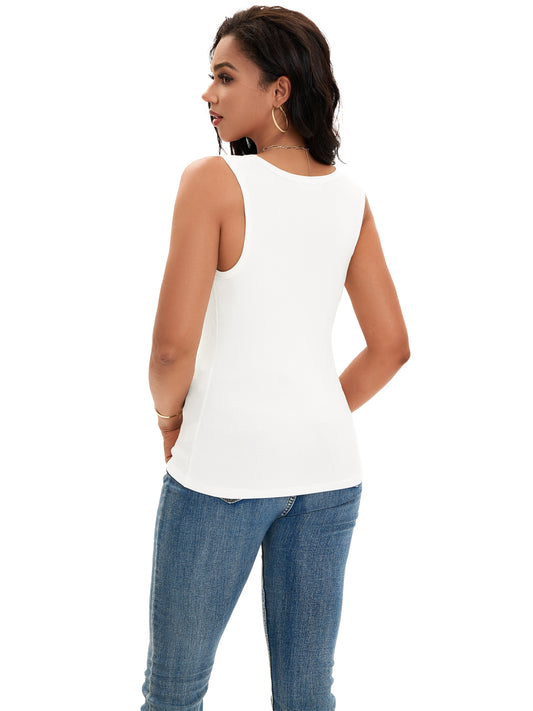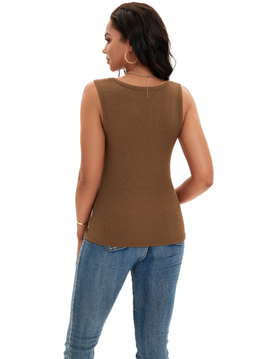 Womens Ribbed Tank Summer Sleeveless Scoop Neck Fitted Basic Casual Top