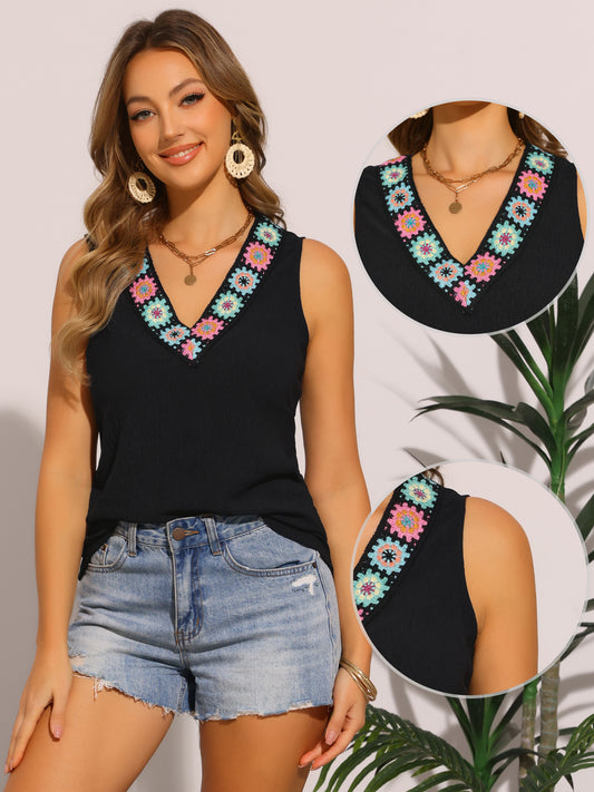 Women's Boho V Neck Casual Summer Floral Sleeveless Tank Top
