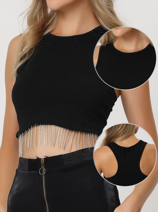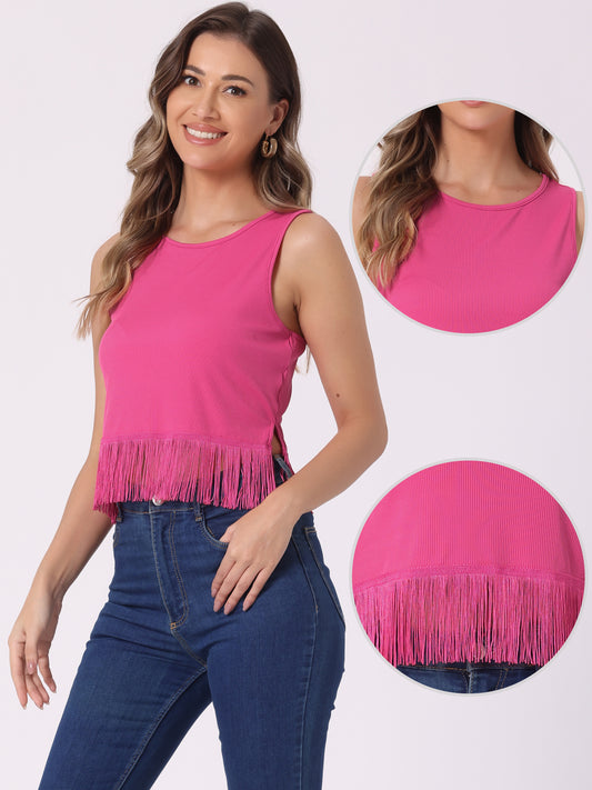 Women's Fringe Tank Top Casual Sleeveless Tassel Racerback Ribbed Knit Crop Top