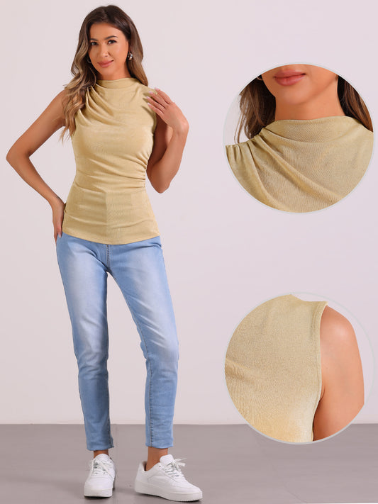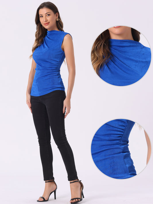 Women's Turtle Mock Neck Casual Slim Fit Sleeveless Ruched Tank Top