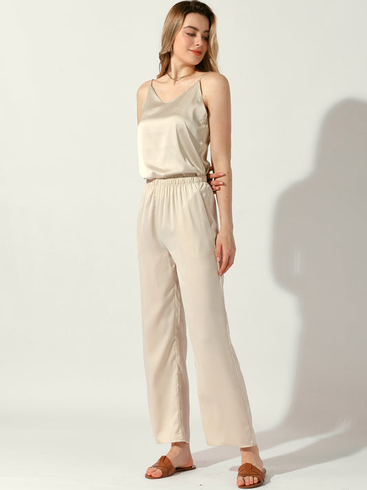 Women's Silky Satin Tank Top V Neck Camisole Spaghetti Strap Top Summer Cami
