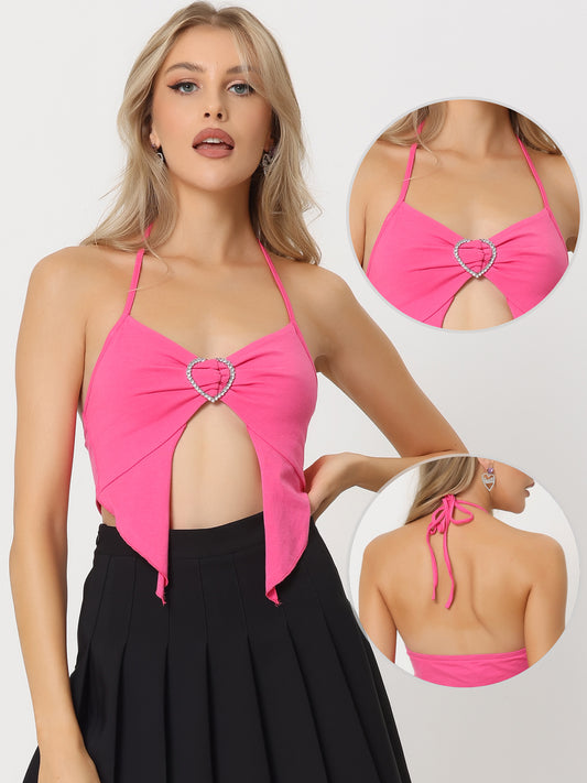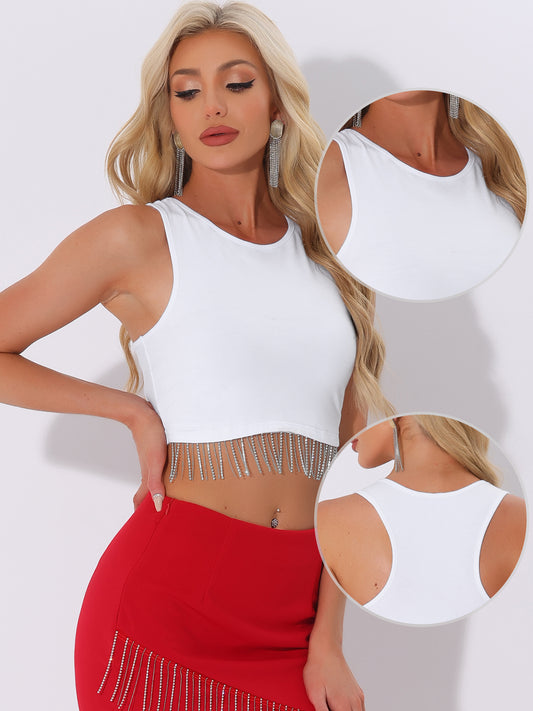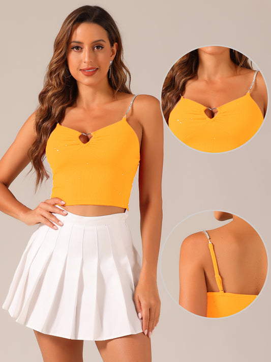 Women's Sexy Crop Top Sparkly Rhinestones Sleeveless Cut Out Spaghetti Straps Cocktail Party Tank Top