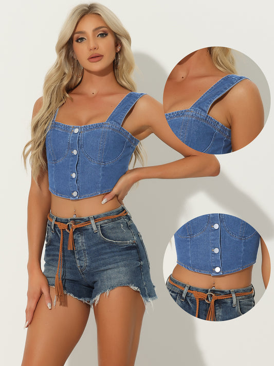 Women's Denim Corset Tops Button Down Sleeveless Bustier Jean Crop Tank Top