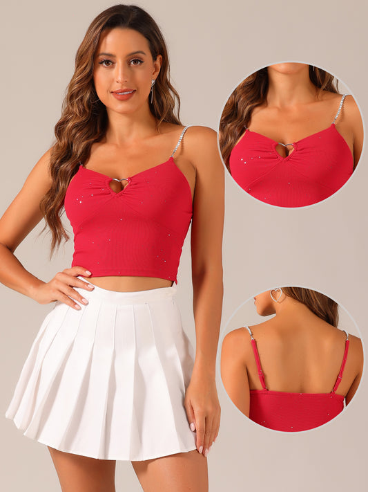Women's Sexy Crop Top Sparkly Rhinestones Sleeveless Cut Out Spaghetti Straps Cocktail Party Tank Top