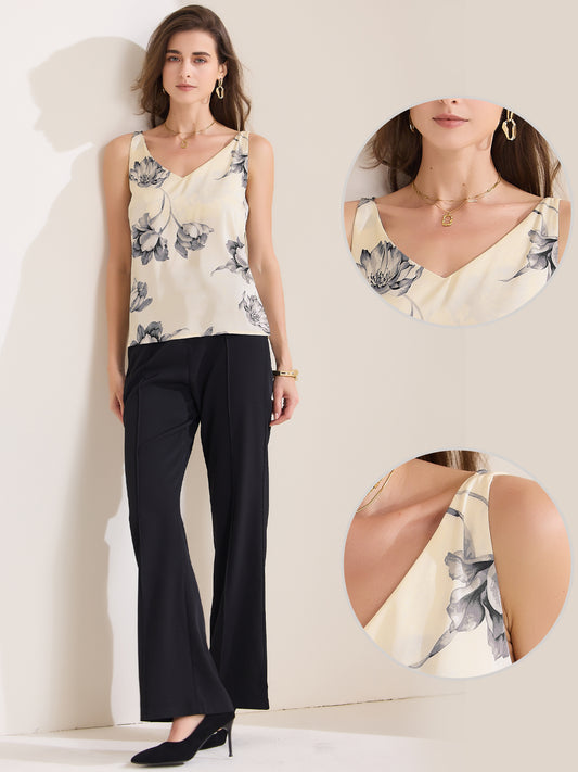 Women's V Neck Sleeveless Floral Satin Cami Top