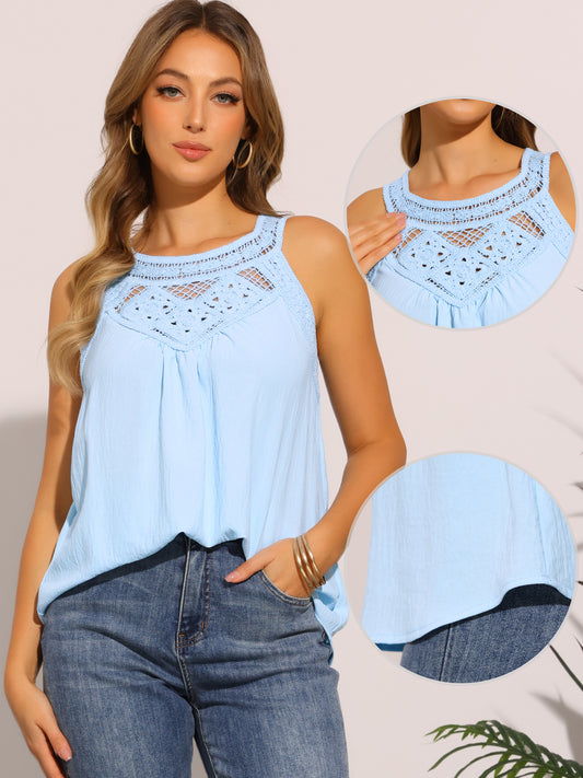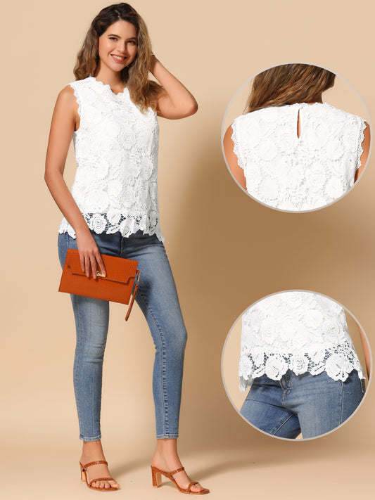 Women's Sleeveless Lace Flower Lace Tank Tops
