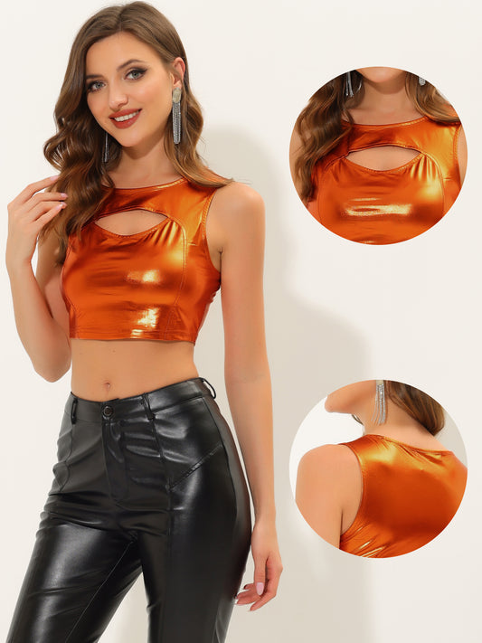 Women's Sleeveless Cut Out Party Clubwear Holographic Tank Metallic Crop Top