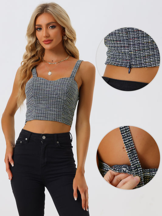 Women's Tweed Sweetheart Neck Bustier Corset Strap Crop Top