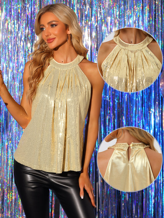 Women's Party Club Cocktail Sleeveless Tops Sparkle Vest Tank Camisole Sequin Halter Top
