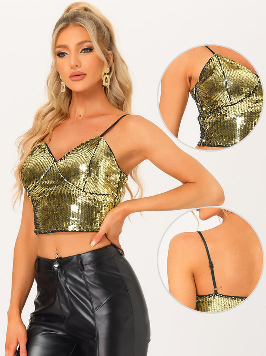 Women's Sequin Cami Top Spaghetti Strap Club Party Crop Tank Tops