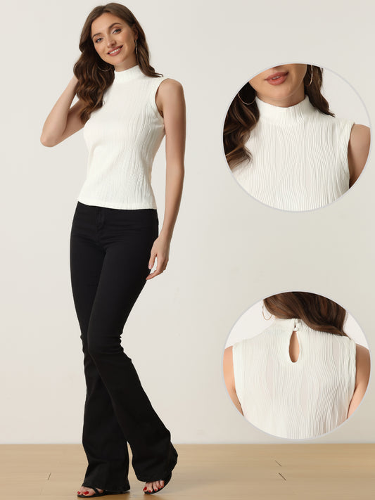 Women's Sleeveless Fitted Top Mock Neck Textured Ribbed Knit Tank Tops
