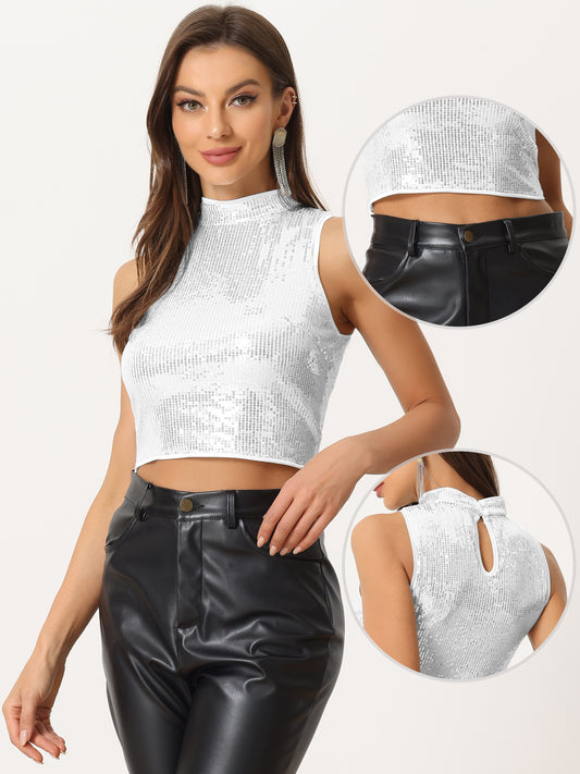 Women's Metallic Crop Top Sleeveless Holographic Sparkly Sequin Tops