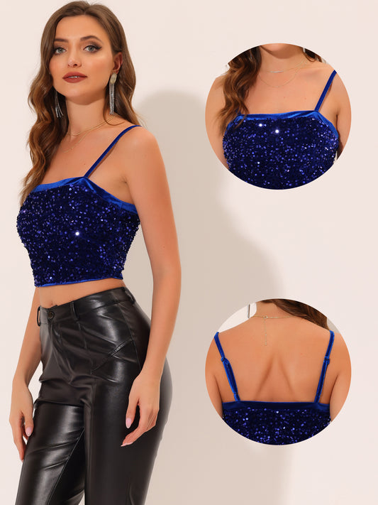Women's Velvet Spaghetti Strap Club Party Crop Tank Sequined Cami Top
