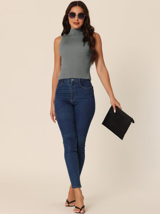 Women's Turtleneck Vest Ribbed Pullover Cutout Sleeveless Sweater Crop Top