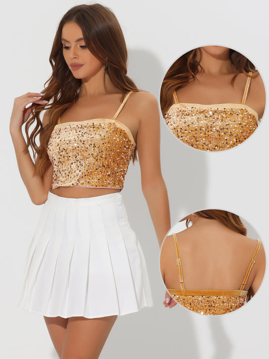 Women's Sequin Spaghetti Straps Crisscross Backless Party Crop Cami Top