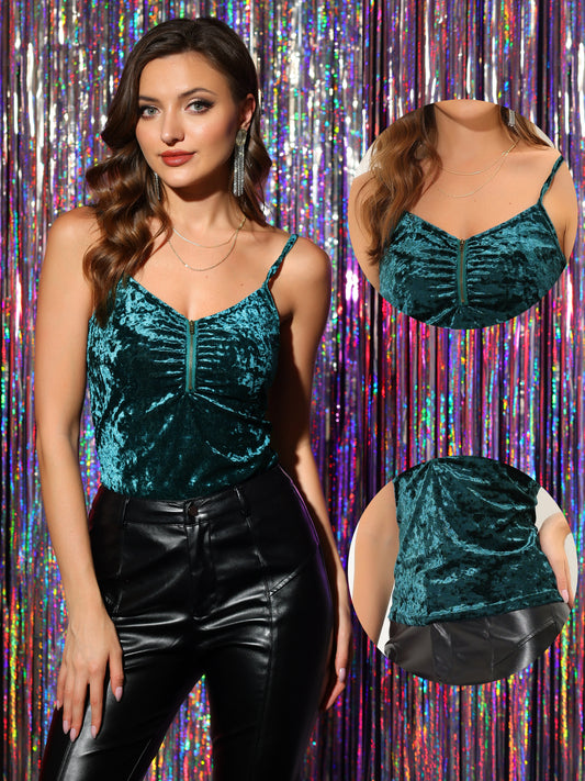 Women's Party Cami Top Velvet Zip Up Spaghetti Strap Halloween Sleeveless Tank Tops
