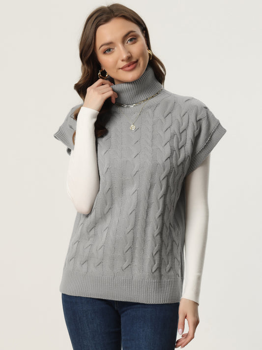 Women's Casual Turtleneck Twist Sleeveless Vest Solid Color Knit Pullover Sweater