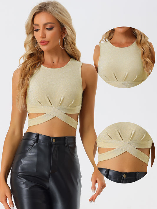 Women's Glitter Crop Top Sparkly Party Cutout Sleeveless Slim Fit Top