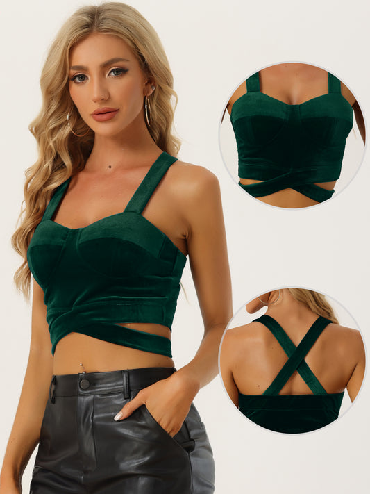 Women's Velvet Cami Tank Tops Sleeveless Spaghetti Strap Deep V Sexy Crop Top