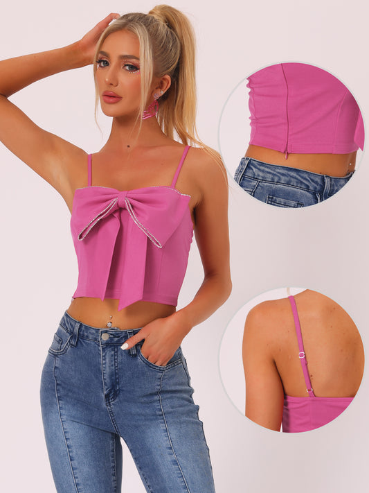 Women's Crop Top Cami Bow Knot Front Club Sexy Party Spaghetti Strap Crop Tank Top