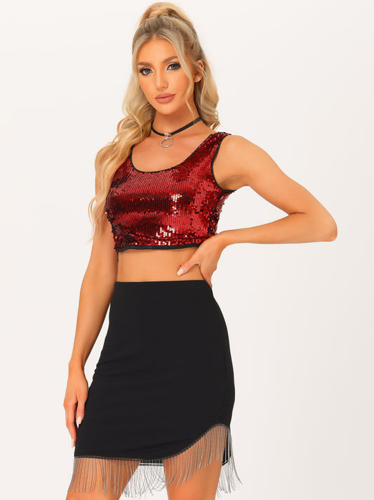 Women's Metallic Sequin Crop Top Sparkle Glitter Sleeveless Party Club Tank Top
