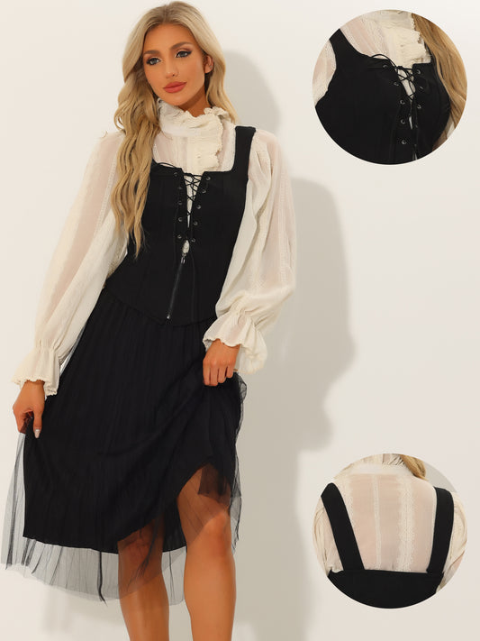 Women's Faux Suede Vintage Steampunk Retro Corset Sleeveless Lace Up Waistcoat Vests