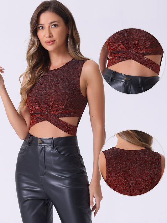 Women's Glitter Crop Top Sparkly Party Cutout Sleeveless Slim Fit Top