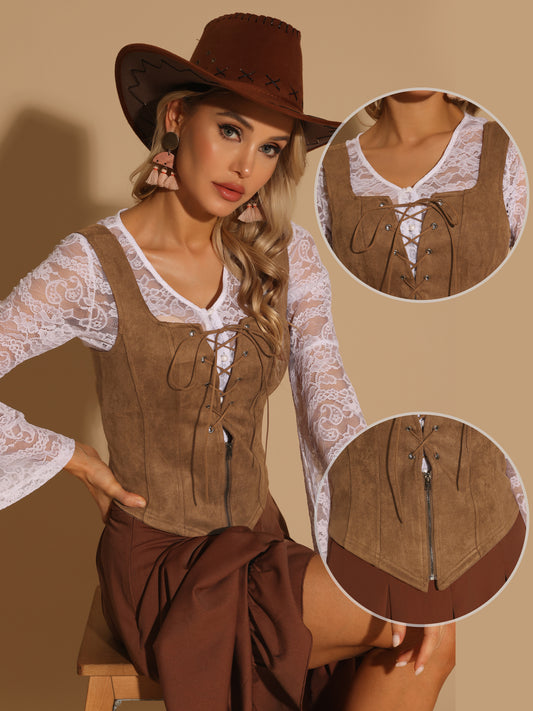 Women's Faux Suede Vintage Steampunk Retro Corset Sleeveless Lace Up Waistcoat Vests