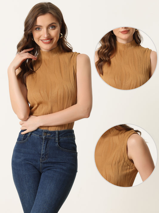 Women's Sleeveless Fitted Top Mock Neck Textured Ribbed Knit Tank Tops