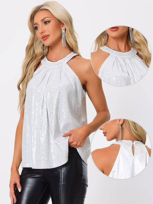 Women's Party Club Cocktail Sleeveless Tops Sparkle Vest Tank Camisole Sequin Halter Top