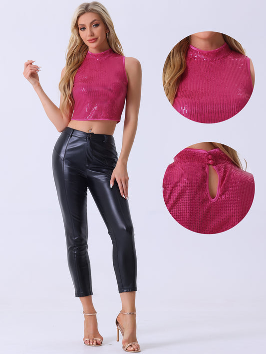 Women's Metallic Crop Top Sleeveless Holographic Sparkly Sequin Tops