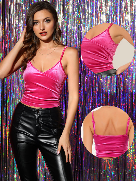 Women's Wrap Crop Top Party Spaghetti Strap Velvet Cami Tops