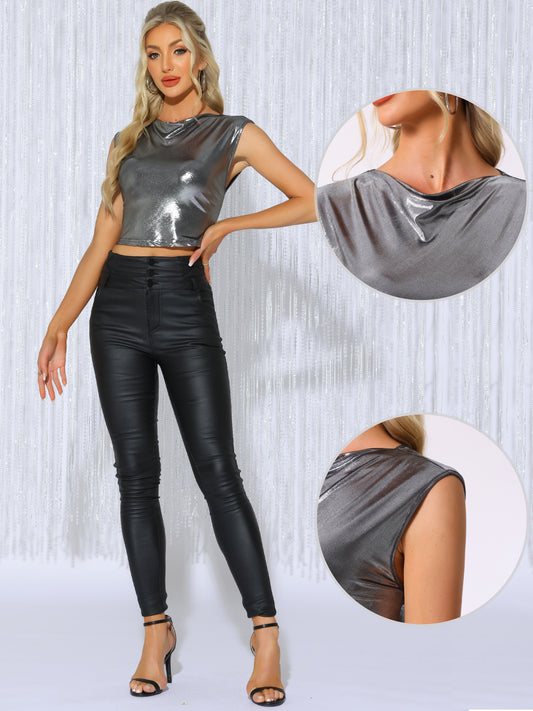 Women's Sleeveless Slim Fit Metallic Tank Top Clubwear Party Shiny Top