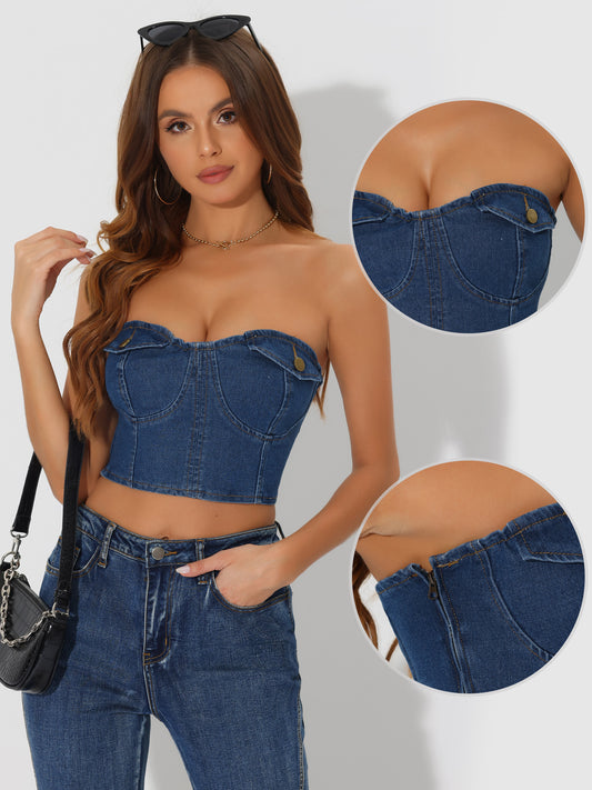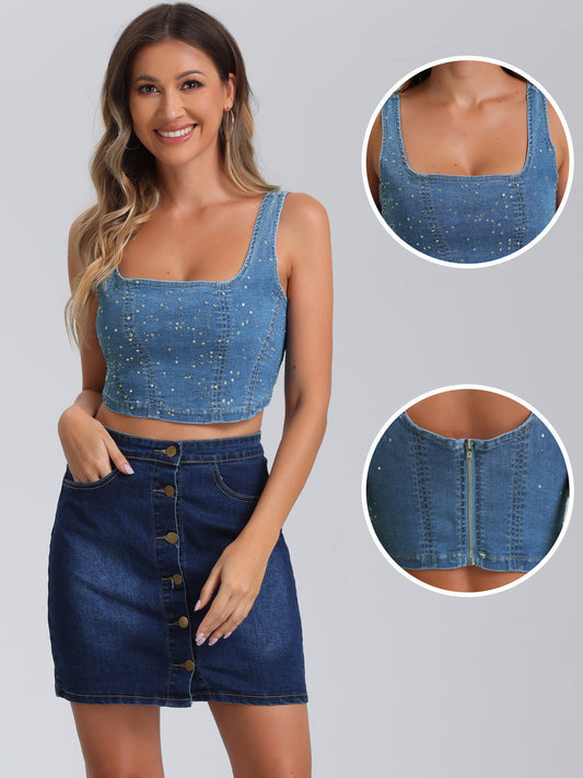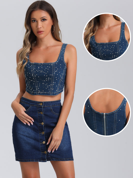 Women's Denim Square Neck Sleeveless Party Corset Crop Tank Top