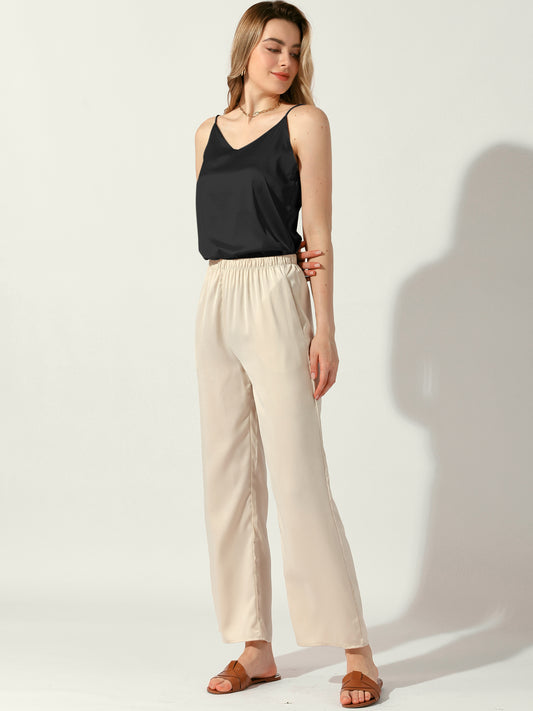 Women's Silky Satin Tank Top V Neck Camisole Spaghetti Strap Top Summer Cami