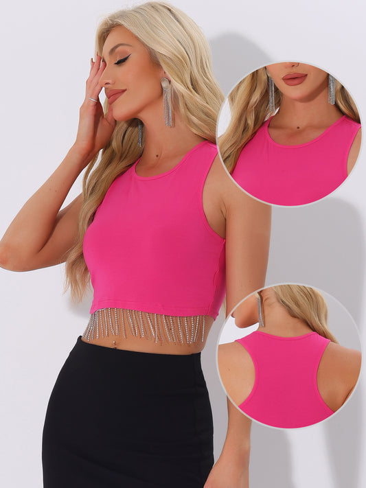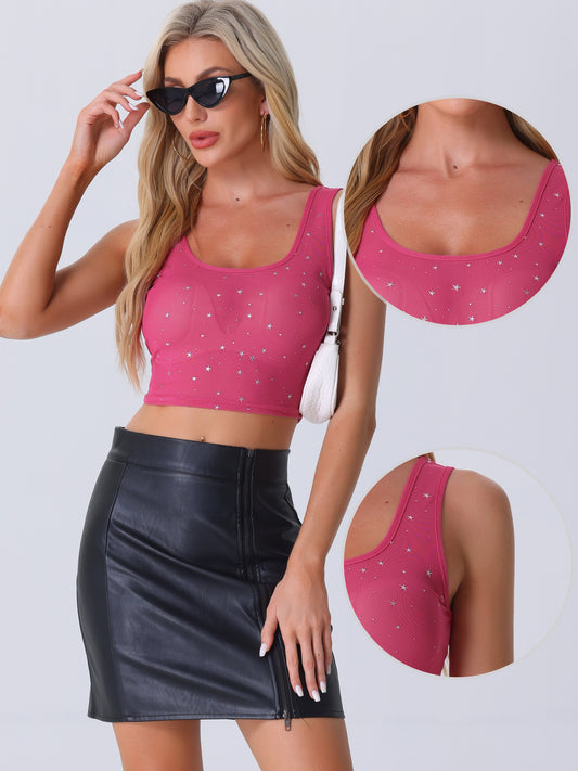 Women's Sheer Mesh Top Party Club Sleeveless Scoop Neck Glitter Star Crop Top