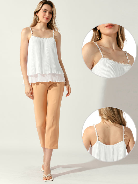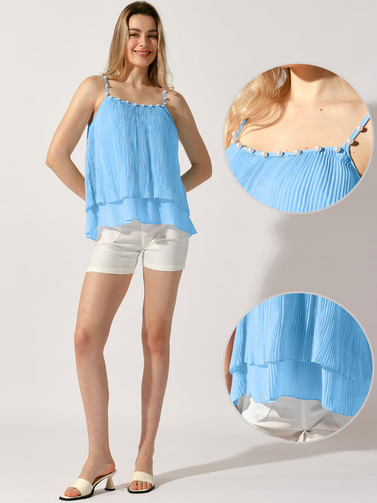Women's Double-Layer Pleated Ruffle Summer Casual Spaghetti Strap Tank Top