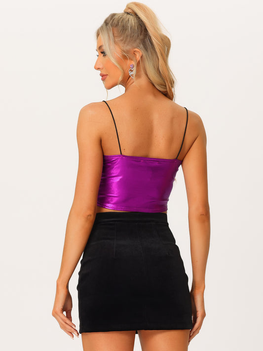 Women's Sexy Spaghetti Strap Cami Top Sleeveless Party Sparkly Shiny Metallic Crop Tank Top