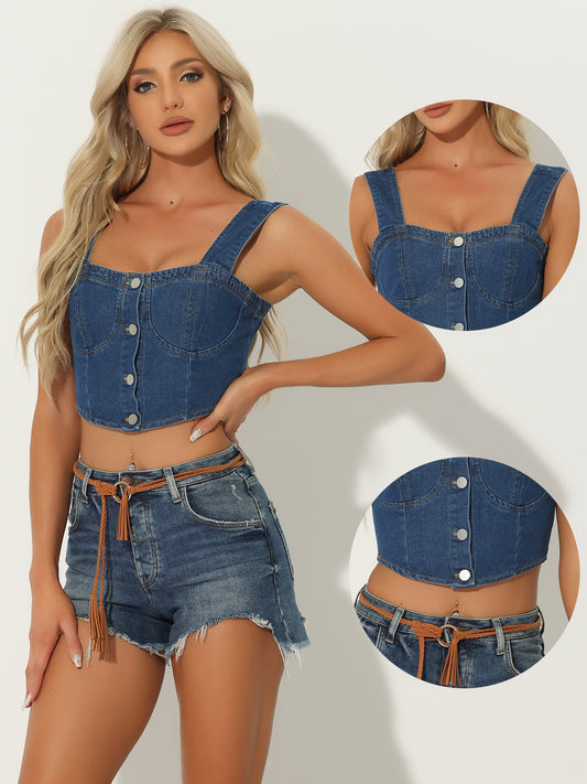 Women's Denim Corset Tops Button Down Sleeveless Bustier Jean Crop Tank Top