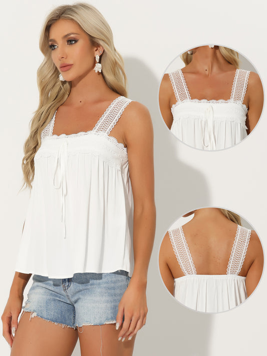 Women's Casual Sleeveless Top Square Neck Panel Lace Ruffles Tank Top