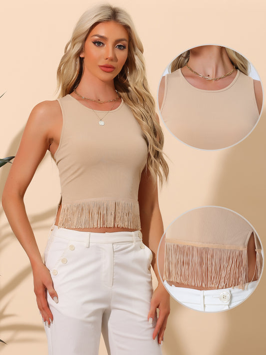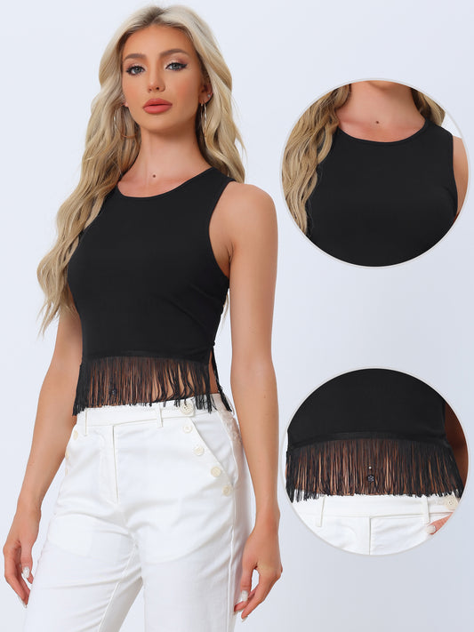Women's Fringe Tank Top Casual Sleeveless Tassel Racerback Ribbed Knit Crop Top