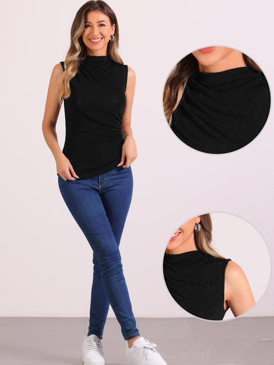 Women's Turtle Mock Neck Casual Slim Fit Sleeveless Ruched Tank Top
