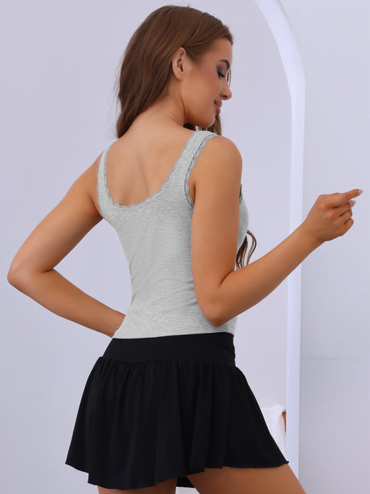 Débardeur côtelé à col carré et coupe ajustée avec bordure en dentelle pour femme