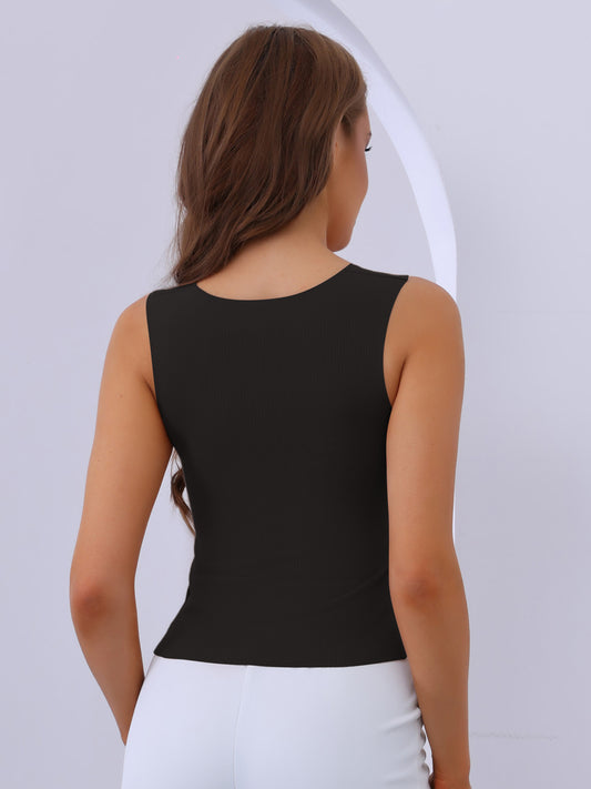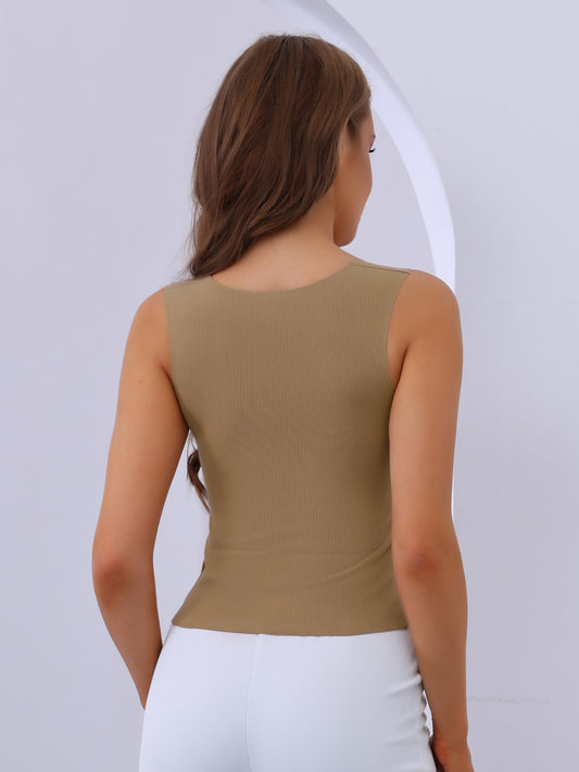 Camisole chaude à col en U pour femme avec soutien-gorge intégré et sous-vêtement côtelé