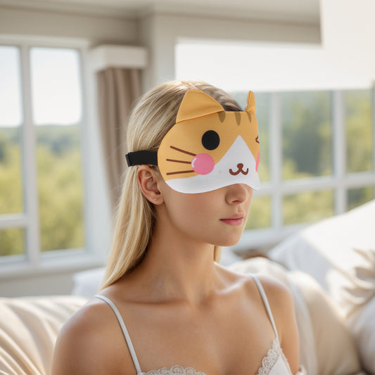Soft Happy Cat Eyes Sleep Mask Eye Shade Cover for Rest Yellow White