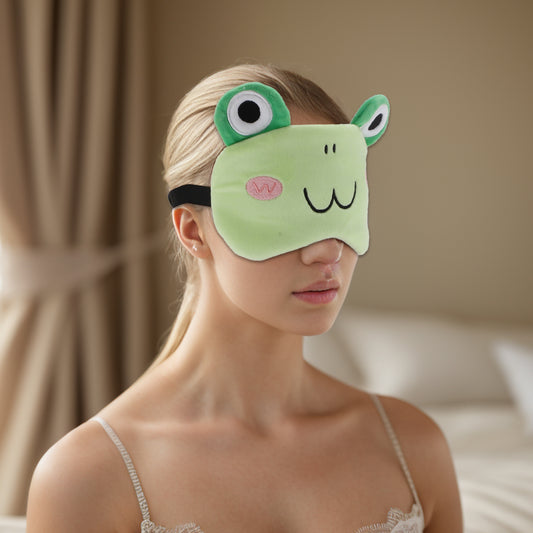 Soft Cartoon Frog W-shaped Mouth Sleep Eye Mask for Travel Green