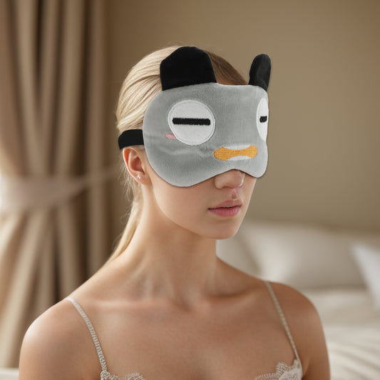 Soft Cartoon Squinting Eyes Sleep Eye Mask for Travel Gray