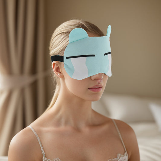 Soft Cartoon Cunning Expression Sleep Mask for Travel Light Blue