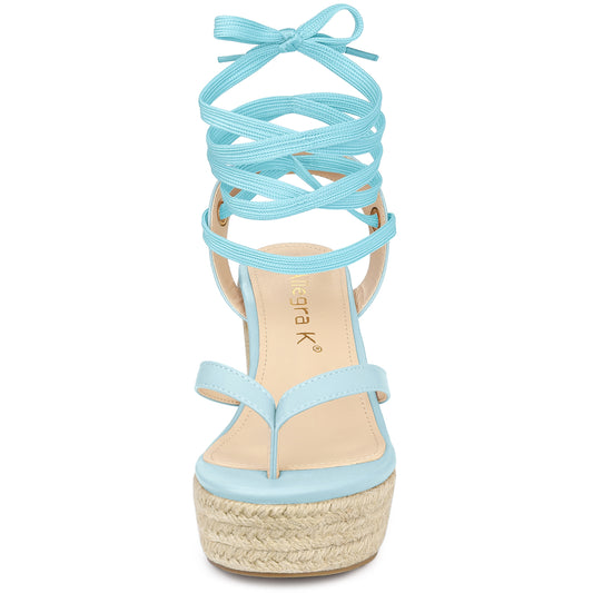 Women Lace Up Platform Wedge Heel Strappy Sandals